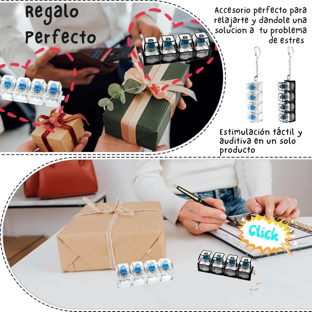 Diseñado para el uso diario y para cualquier edad. Su respuesta táctil relajante ayuda a liberar el estrés de forma natural, mientras sus teclas intercambiables y su tamaño cómodo lo convierten en un hábito sencillo que acompaña tu día con ligereza y tranquilidad.